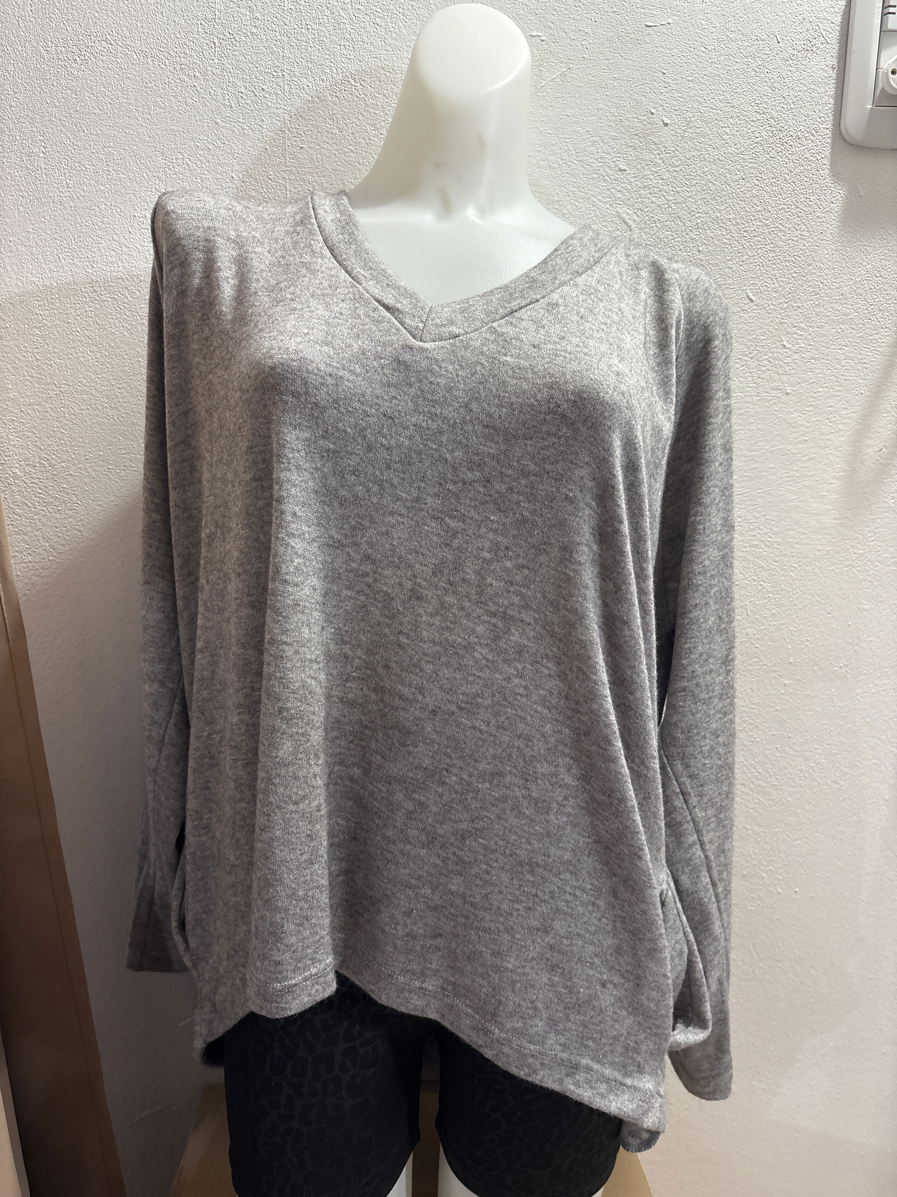 Sweatter lanilla gris escote V